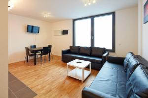 Das Apartment besticht durch eine voll ausgestattete Küchenzeile mit Herdplatte, Backofen, Mikrowelle sowie Kühlschrank und Geschirrspüler. Zusätzlich stehen Kaffeemaschine, Toaster und Wasserkocher zur Verfügung. Das Wohnzimmer ist mit einem Schlafsofa sowie Flachbild-TV eingerichtet und bietet einen gemütlichen Sitzbereich auf Parkettboden. Im separaten Schlafzimmer finden Sie bequeme Betten vor, das Badezimmer verfügt über eine ebenerdige Dusche samt Duschgel sowie einen Haartrockner.